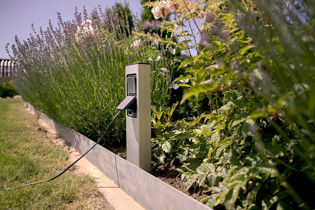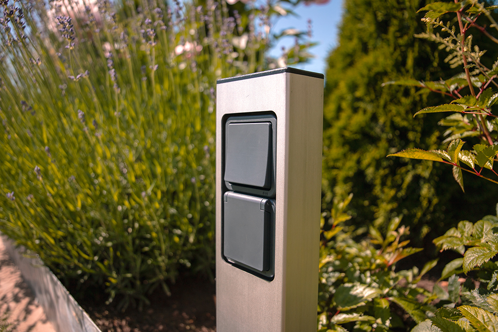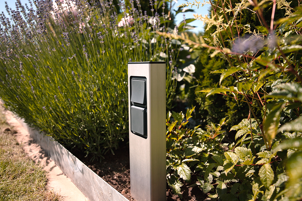 El stander til nedgravning til 1 stik og 1 afbryder i Mørkegrå